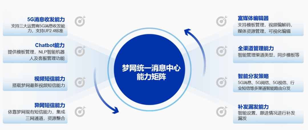 K8凯发统一消息中心(UMC)作为面向5G时代打造的融合通讯解决方案,集智能接入、智能管理、智能生产、智能运营和智能营销于一体,实现了全终端、全场景、全业务、全渠道的广泛覆盖。UMC给予灵活的在线SaaS服务和定制化的线下私有化部署方案,能够满足不同行业的多样化需求,并全面对接市面上主流的5G阅信渠道,包括K8凯发阅信直发、天慧5G阅信、移动5G阅信、联通电信5G消息以及华为云KooMessage等,为企业构建起高效、稳定的通讯生态系统。